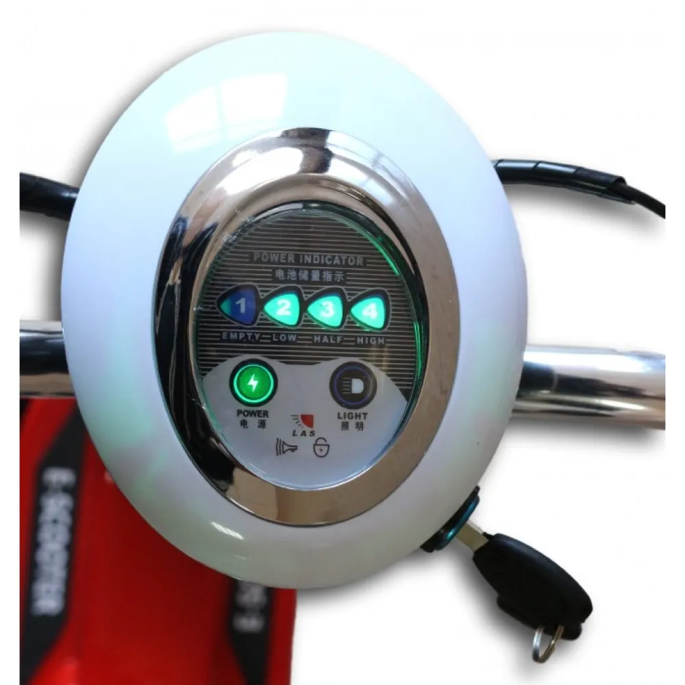 Съёмное сиденье, передняя светодиодная фара, задний фонарь, указатели поворота, звуковой сигнал, индикатор заряда батареи. Корзинка для багажа (+700 руб.).