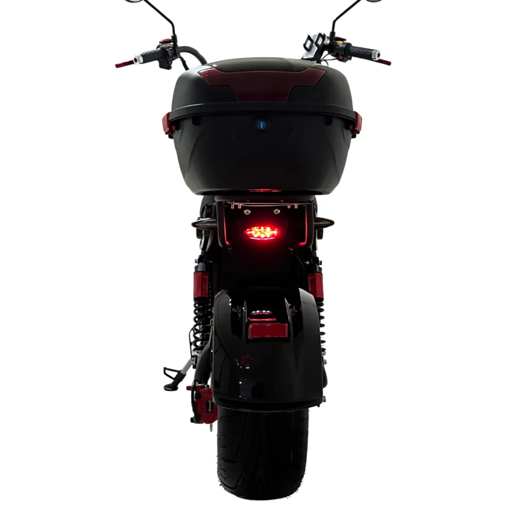 Задний привод и двигатель мощностью 3990 Вт обеспечивают динамичный разгон и уверенное движение даже при полной нагрузке. Электроскутер способен перевозить до 200 кг, сохраняя отличную управляемость. Полного заряда встроенного аккумулятора 60V хватает до 60 км пробега, а зарядка занимает 8–10 часов — удобно для ежедневных поездок по городу.