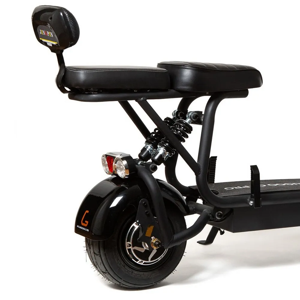 Электроскутер Kugoo C1 PRO является складным, что упрощает его транспортировку и хранение. На него установлены дисковые тормоза и задний амортизатор. У данной модели, также есть фонари, подножка и встроенный бортовой компьютер. Его полный вес равняется 33 килограммам.
