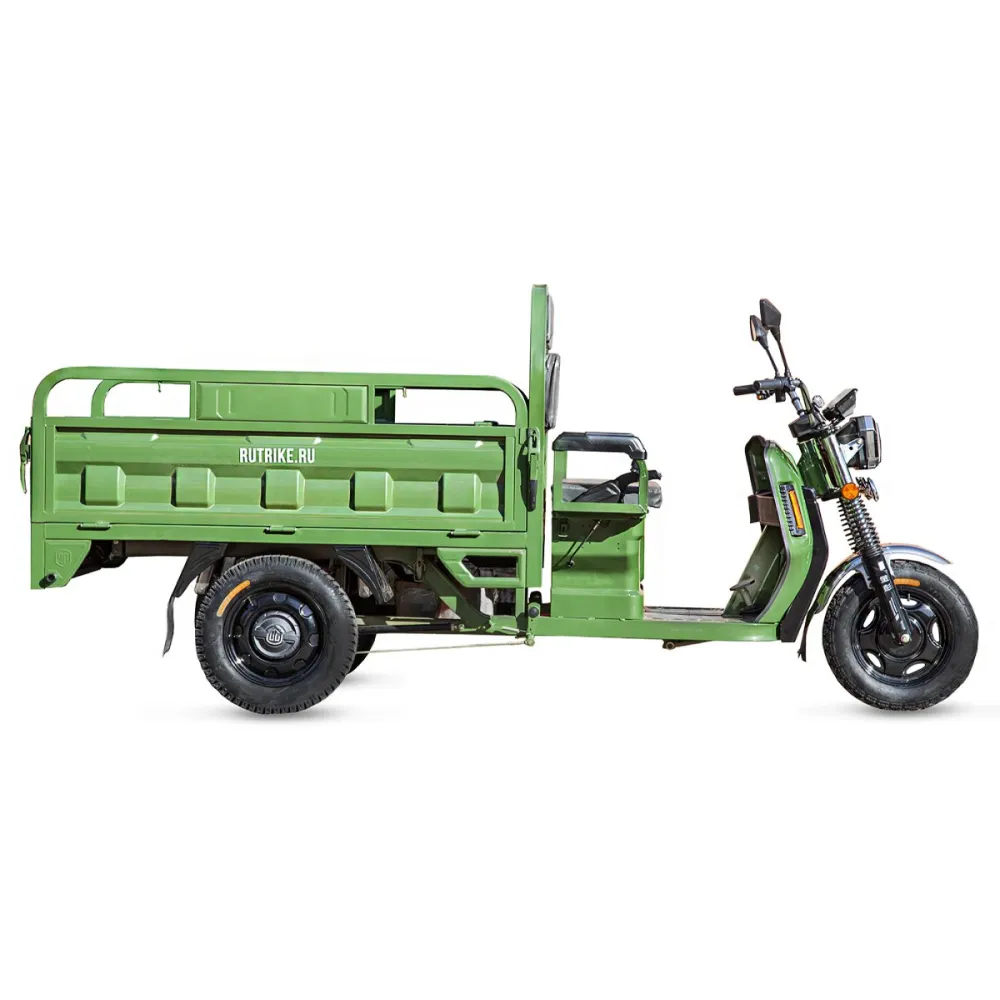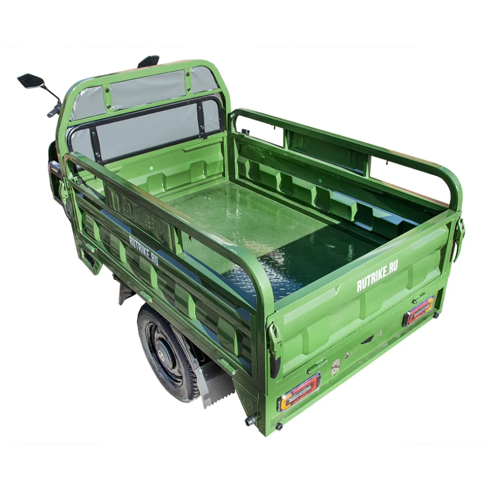 Грузовой электротрицикл Rutrike Маяк 1600 60V1000W зеленого цвета - это надежное и эффективное транспортное средство для перевозки грузов. Его мощность, грузоподъемность и барабанные тормоза делают его отличным решением для различных бизнес-потребностей.