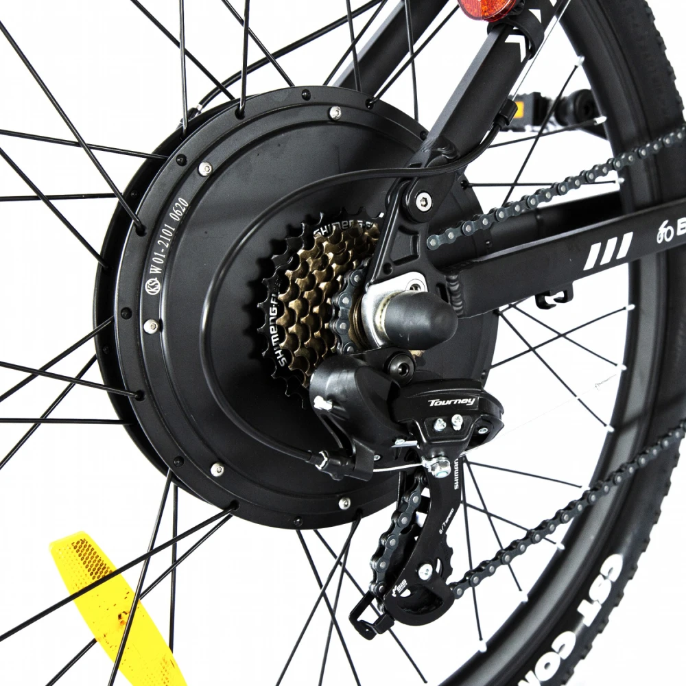 Конструкция рамы изготовлена из ударопрочного, инновационного алюминиевого сплава, выдерживает максимальные нагрузки (до 125 кг), не деформируется. Мощность движка достигает 1500 Вт, параметры емкости – 13 А*ч. Последняя надежно защищена от негативных внешних воздействий рамой.