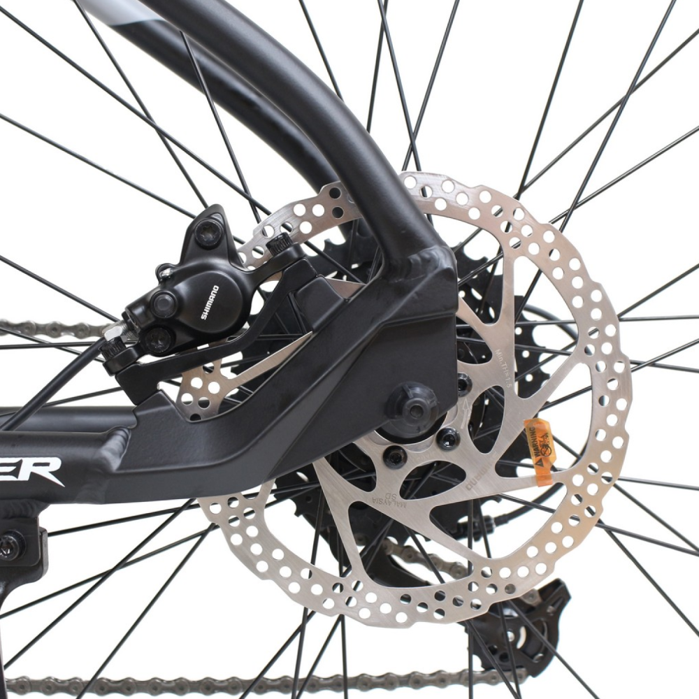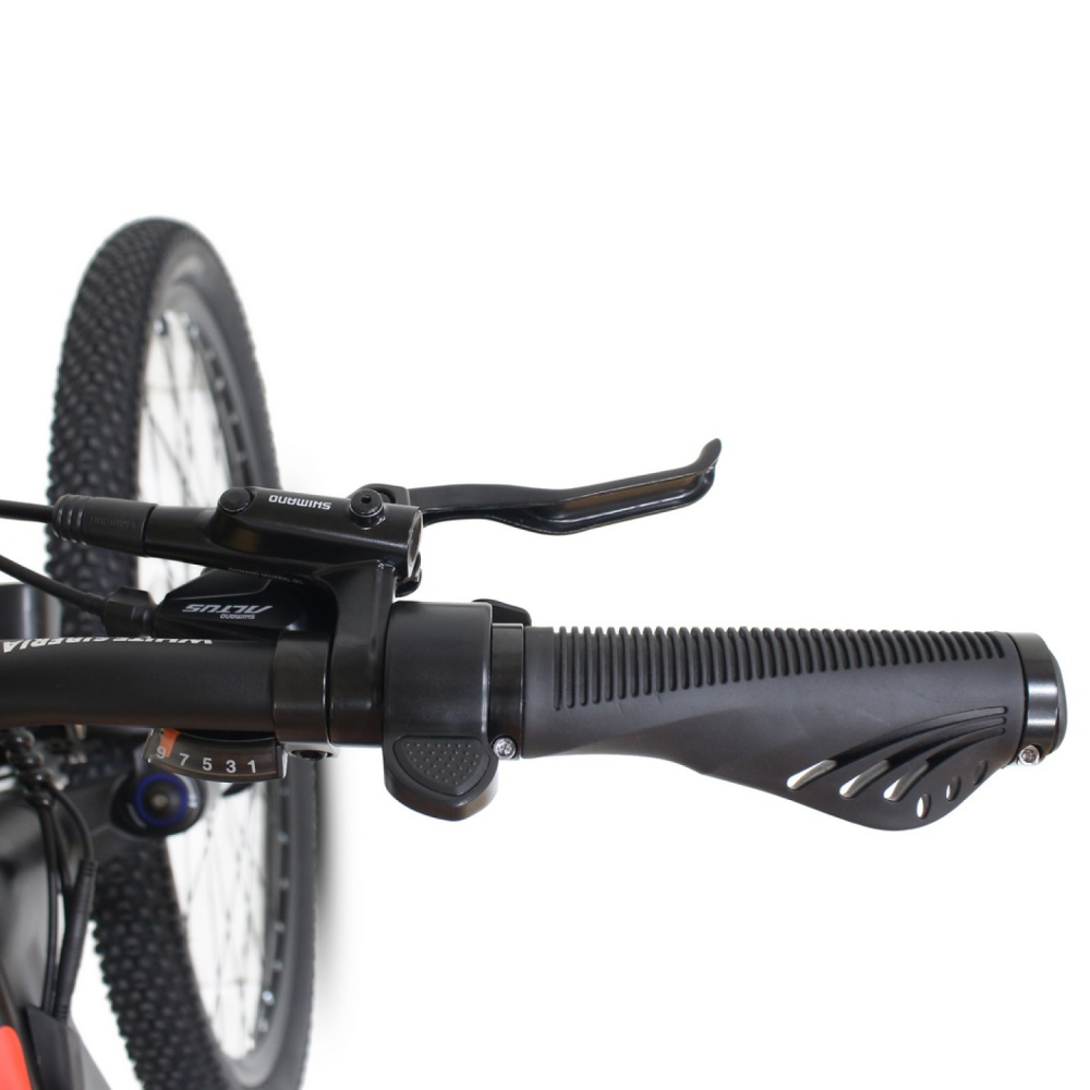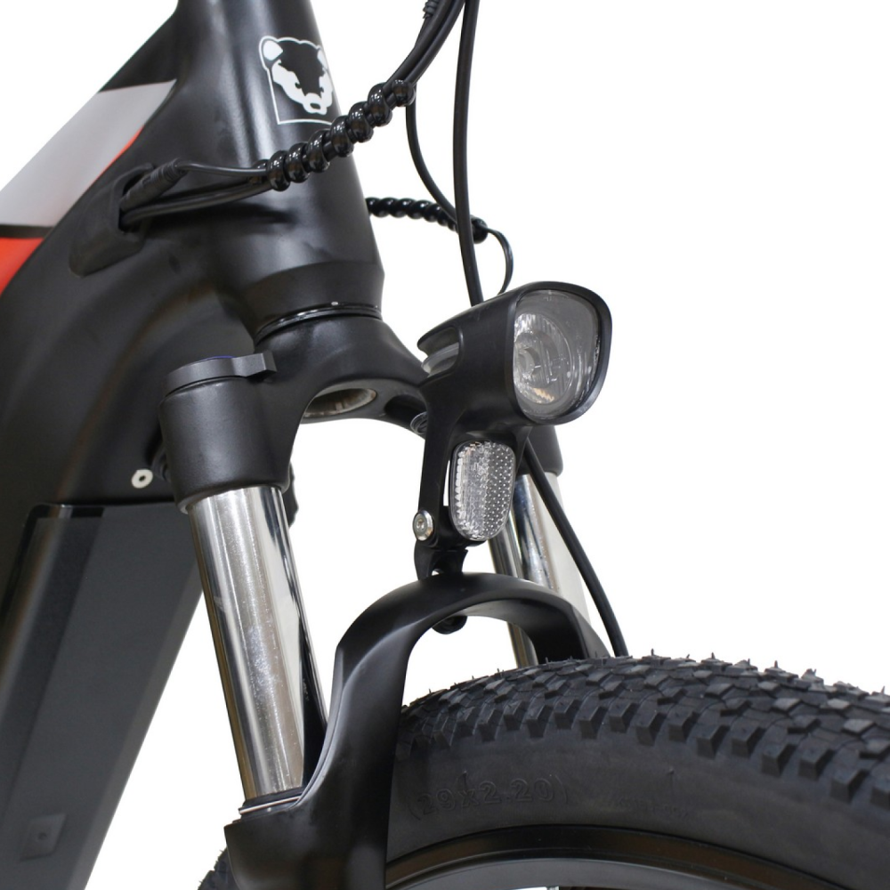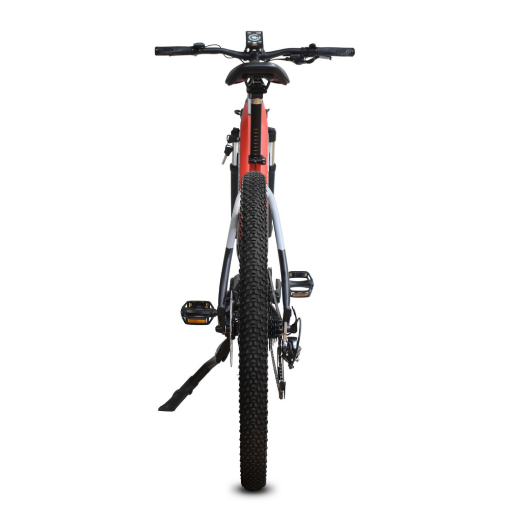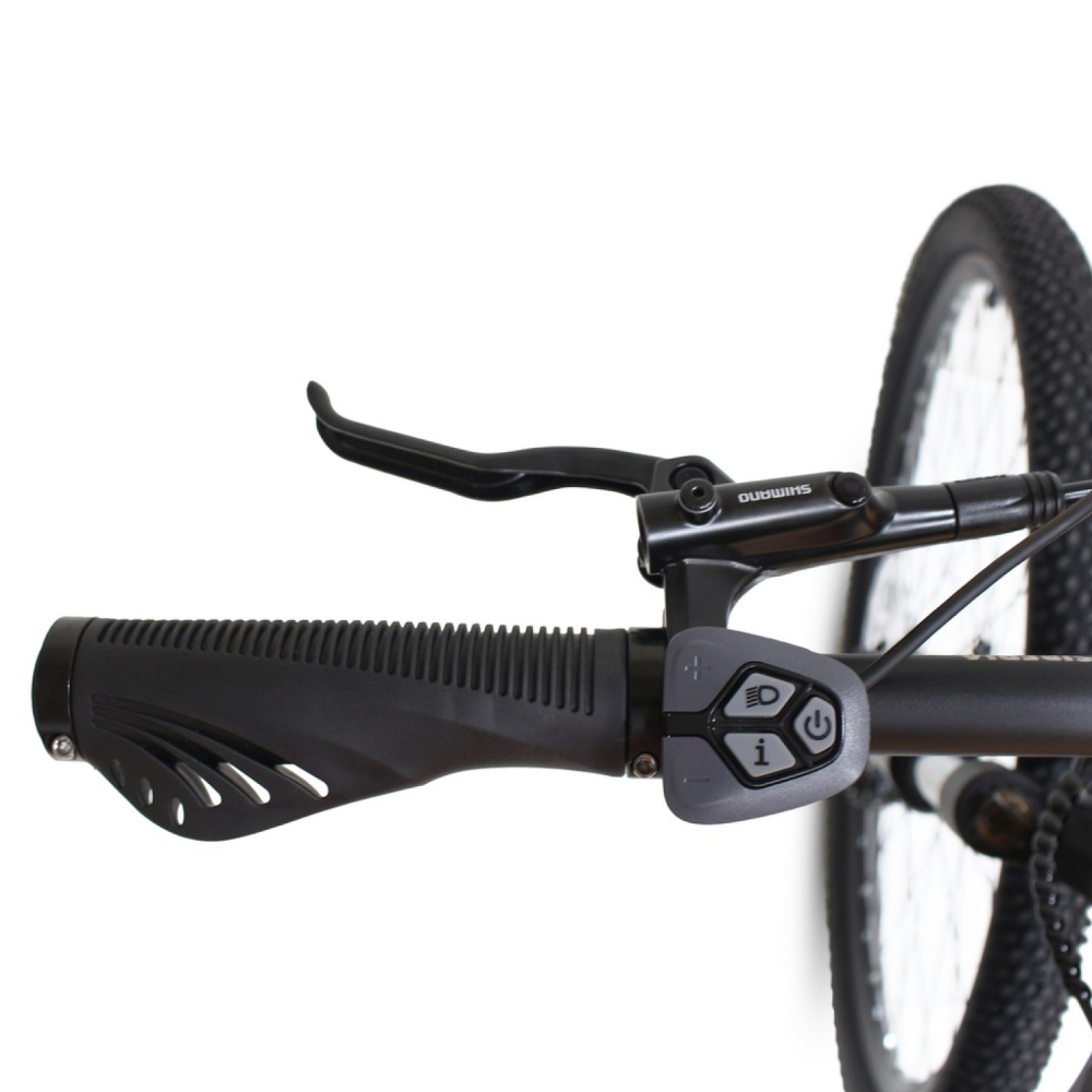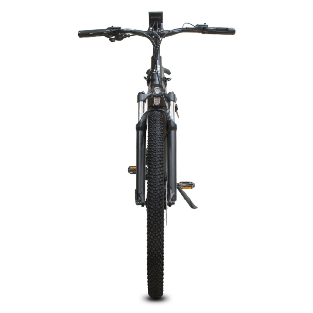 Для комфортной езды электровелосипед оснащён передней воздушно-масляной подвеской с амортизатором, которая смягчает неровности дороги. Тормозная система представлена дисковыми механическими тормозами, обеспечивающими надёжное и эффективное торможение.
