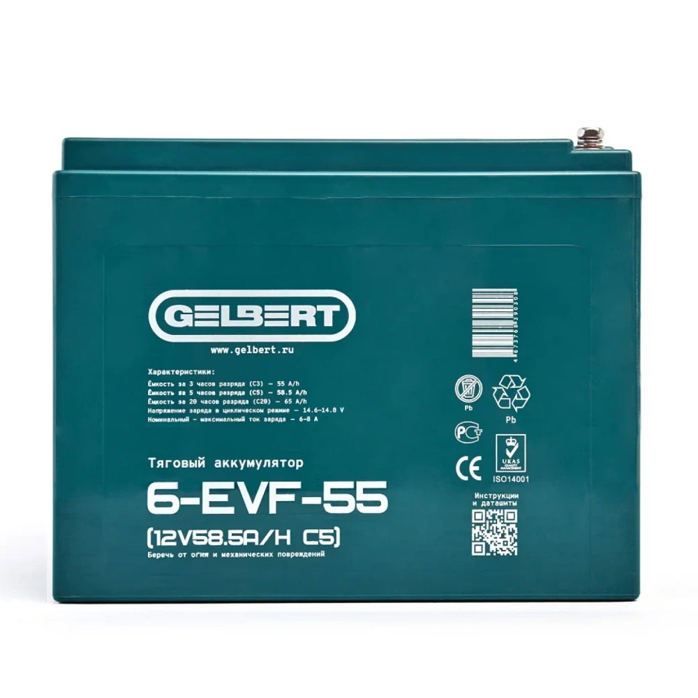 Тяговый аккумулятор Gelbert 6-EVF-55 (12V58.5A/H C5)